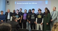 Vendredi 19 janvier, les élèves de terminale CAP chaudronnerie (RICS) ont inauguré la nouvelle enseigne du lycée Jean Jaurès réalisée par leurs soins. Ce projet, qui permet de donner une identité au lycée, était surtout le chef d'œuvre des élèves. Ces cinq futurs chaudronniers se sont investis pendant un an pour réaliser les quinze lettres composant la nouvelle enseigne "LYCEE JEAN JAURES". Ces lettres de 30cm x 50cm, réalisées en tôlerie, occupent 6m de façade, laissant une trace indélébile de leur passage au lycée.