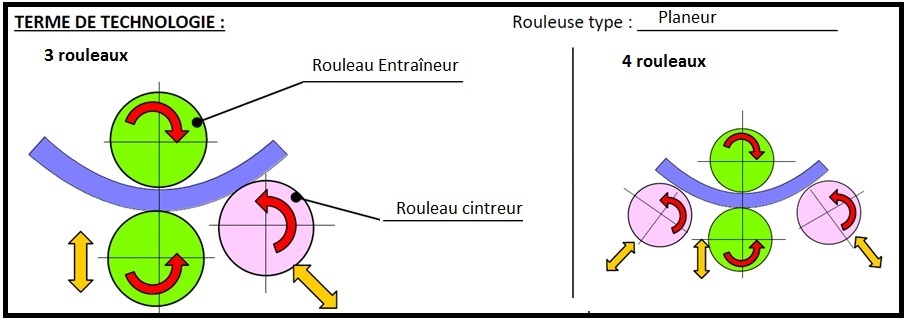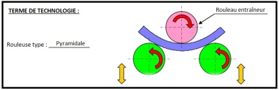 Sur cette machine, c'est un moteur qui entraîne la tôle. Le rouleau cintreur se déplace verticalement. il est manœuvré à la main sur ce modèle.