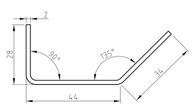 Pour une pièce ne possédant qu'une valeurs de pliage à 90°, la méthode des cotes intérieures est la plus simple. En effet, il suffit d'additionner toutes les cotes "en intérieur" des plis pour avoir la longueur développée. Attention cependant au choix du Vé.