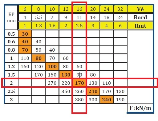 - la valeur du Vé utilisé est égale à 8 fois l'épaisseur : Vé = 8 x ép