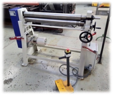 Sur cette machine, c'est un moteur qui entraîne la tôle. Le rouleau cintreur se déplace verticalement. il est manœuvré à la main sur ce modèle.