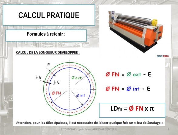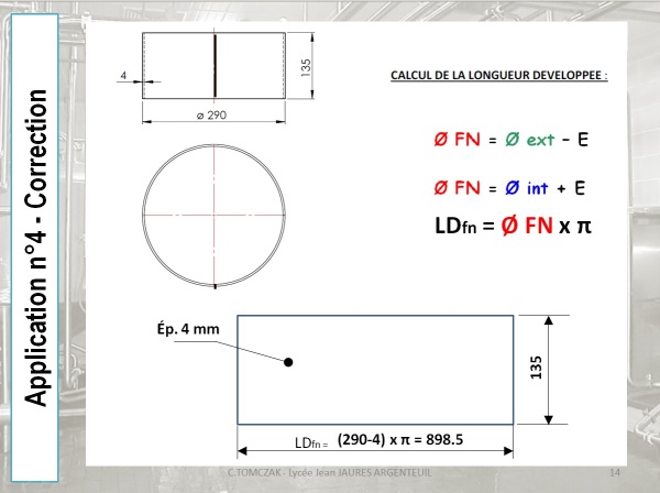 Pour calculer la longueur développée d'une virole, il faut respecter 2 étapes :