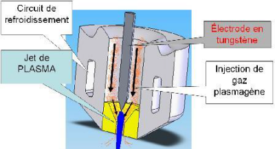 Grace à une convection forcée au travers d'un orifice de faible diamètre, l'arc et le gaz sont dirigés sur une zone très précise. Le gaz devenu PLASMA dont le débit est suffisant, permet de chasser le métal en fusion.